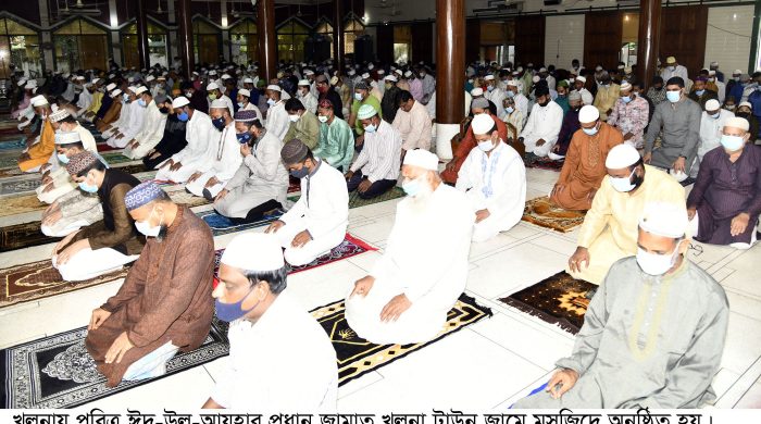 খুলনা প্রতিনিধিঃ করোনাভাইরাস সংক্রমণ প্রতিরোধে স্বাস্থ্যবিধি অনুসরণ করে এবার সারা দেশের মতো খুলনায় যথাযোগ্য মর্যাদা ও ভাবগাম্ভীর্যের মধ্য দিয়ে পবিত্র ঈদ-উল-আযহা উদযাপন করা হয়। শারীরিক দূরত্ব বজায় রেখে সকাল আটটায়